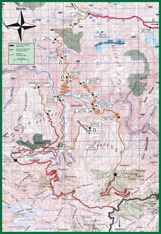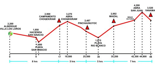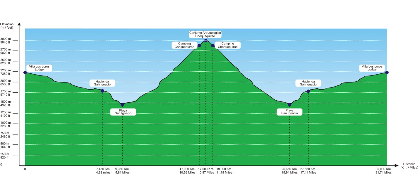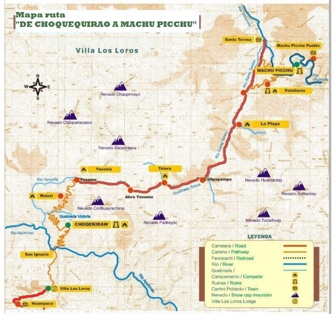 El viajero puede alcanzar Choquequirao vía Huanipaca (in & out), siendo la ruta más breve y la forma más rápida para llegar al Conjunto Arqueológico, disponiendo de más tiempo para visitarlo. Se arriba en 7 horas aproximadamente.