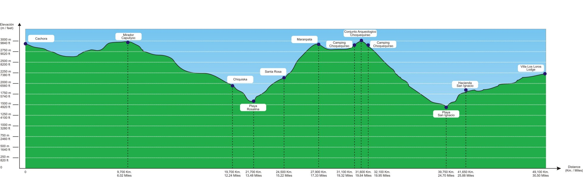 También puede viajar vía Cachora (in & out), teniendo presente que esta es la ruta más exigente; sin duda es la más larga y obliga al viajero, por la distancia, a pasar una noche a lo largo de la misma. Desde Cachora, llegar a Choquequirao demora aproximadamente 13 horas de camino.
